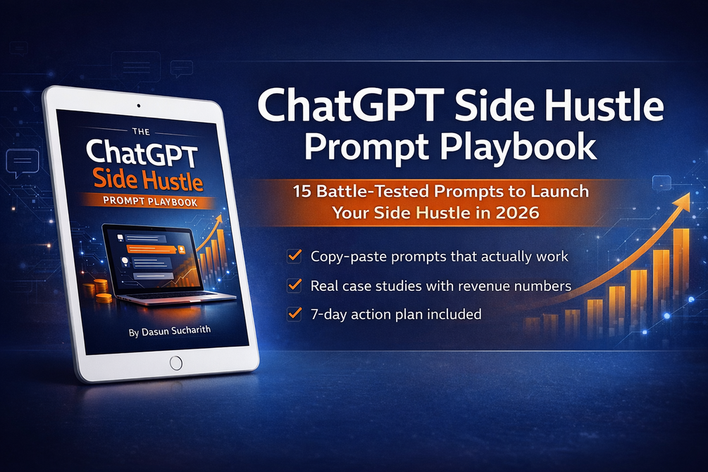 15 copy-paste ChatGPT prompts, 3 real-world case studies, worksheets, and a 7-day action plan to launch your side hustle in 2026.